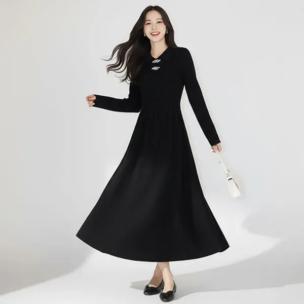Dreamy Button-Up Maxi Dress with Sweet Collar & Cozy Long Sleeves 🤍🌸